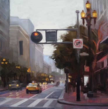 Much of her work reflects the urban street scenes of that City. “My immersion in urban scenes reflected some of the loneliness I felt when I lived in San Francisco, though I came to love this lively city--its captivating neighborhoods and breathtaking vistas. I’m interested in light and shadow within the scene; to me they are reflections of the natural spiritual energies and the constant tug of war which takes place.” Erica’s decision to leave San Francisco and move back to upstate New York was sudden, “I think it was being torn from the City that ultimately made me want to paint it so badly.”