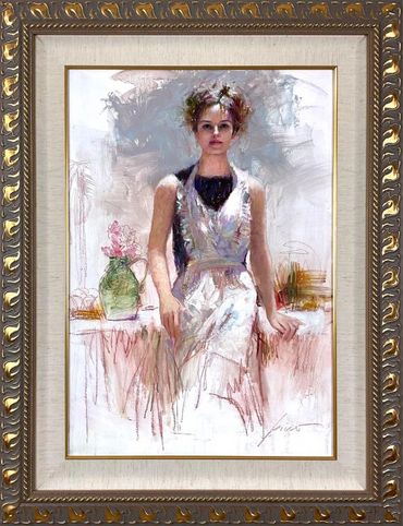 One of our favorite artists, Pino Daeni (1939-2010) was born in Bari, Italy. Trained at The Art Institute of Bari and later at Milan’s Academy of Brea, he perfected his skills painting nudes and figures and was heavily influenced by the Pre-Raphaelites and Macchiaioli. Pino’s early paintings, featuring soft and romantic characters, caught the attention of major book publishers. Over the ensuing decades Pino illustrated the covers of over 3,000 books, with his unique style dominating the market. Pino’s exceptional ability to capture the movements, expressions and deep contemplation of his subjects has brought his artwork a worldwide following and many commissions for private portraits. Some of his works are available in our Art Gallery and we offer them here today.