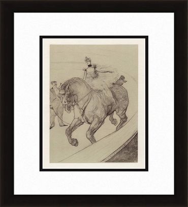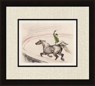In the late 1800s Fin-de-siècle Paris hosted a number of circuses and Toulouse-Lautrec (French,1864-1901) frequented them all. He was personally drawn to circus performers - those colorful equestrians, animal trainers, clowns, and acrobats on society's fringes. It was while undergoing treatment for alcoholism at a sanitarium on the outskirts of Paris in 1899 that Lautrec produced these creative crayon/chalk drawings of circus figures. These sketches were drawn entirely from memory. The Lehman horse and rider perform the "pas espagnol", the ambling gait formalized by the Spanish Riding School of Vienna. It was thanks to these circus drawings that Toulouse-Lautrec earned his release from the sanitarium. His impressive handling convinced doctors of his improving health. Leaving the clinic, he is said to have remarked, "I've bought my release with my drawings." Some of his works are available in our Art Gallery and we offer them here today.